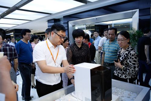交流会上,董事长俞锋讲述其科恩电器十余年的发展征程, 磨砺出剑峰,科恩快速被市场广泛接纳、被消费者所认可,良好的品牌形象和知名度、独特的产品品质、合理的价格和服务让科恩电器渐渐走向高端。随后,俞董事长重点介绍并演示了科恩为响应“绿色家电”消费,重点研发的环保“黑科技”——科恩移动水吧。健康饮水倡导者,全品类厨电质造专家科恩电器凭借移动水吧荣获“工业设计大赛产品设计优秀奖”,这一殊荣充分展现了科恩电器的工业设计实力,也是行业对科恩电器在工业设计领域成绩的充分认可。