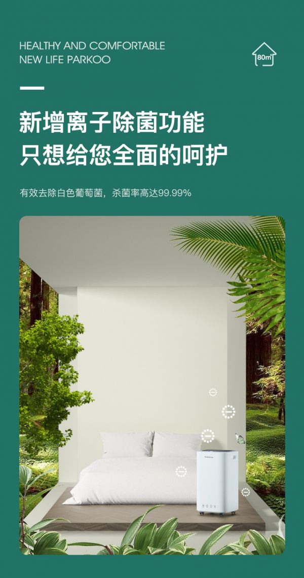 高湿度环境中容易滋生细菌,除湿机的抗菌性能就显得尤为重要。百奥家用除湿机PD09D新增了负离子的除菌功能,杀菌率高达99.99%。