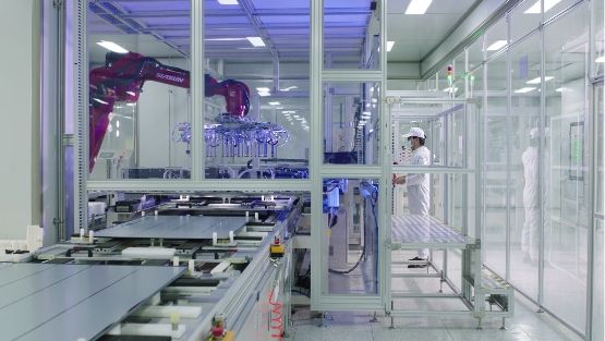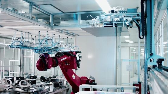 在谈及如何确保成品率与产能的时候,负责人称,试产线采用PCBI 贴合+保压,减少贴合偏移导致的玻璃破损,还将显著提高粘贴工艺可靠性。并且,在贴合与保压区域分别设有千级洁净棚与万级洁净区域,且模组整机区域全部防静电地板胶,有效保证高端产品生产需求。而试产线中的180°自动翻转机器人,通过多组伺服机构及视觉引导,兼容大尺寸 LCD/OLED 产品全自动翻转,省力、省人,同时防止超大板翻转时屏破损。