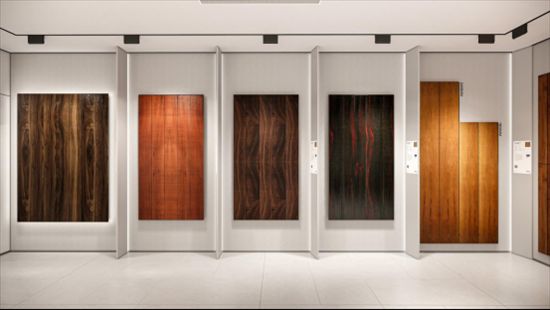 沿着标识文字走上一圈,可以看见四大艺术分区与定制区分割清晰而又互为一体,结合不同加工工艺,划分为艺术探索匠心区、艺术本源名贵区、艺术创新时尚区、艺术传承经典区,以及地板设计定制区。整座艺术馆包含了原木本源的厚重感,也兼具摩登现代的超越感,于场馆中或浏览,或驻足,一木一灯光的设计让艺术的味道扑面而来。