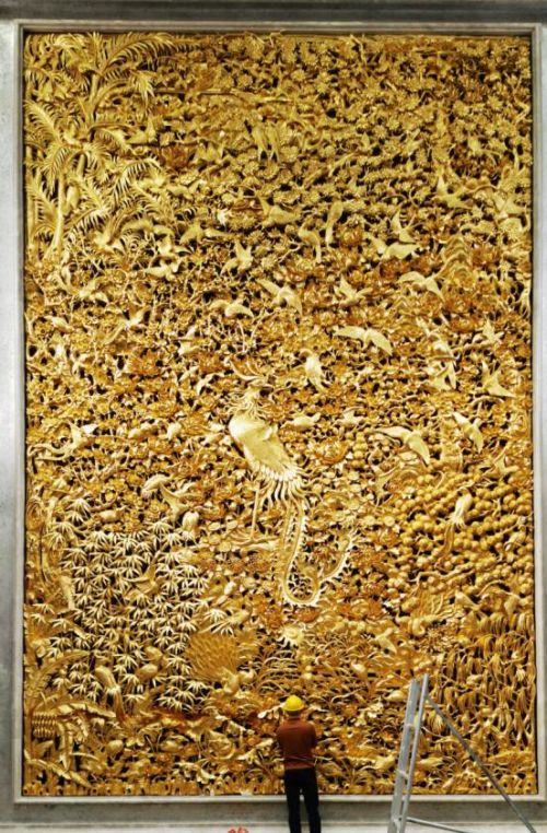 卢:就近几年的木雕行业的情况来看,木雕挂屏,木雕摆件的库存量比较大,形成积压。因此,我们应以市场为导向,创作方向应转向定制的方式,即客户需要什么,我们就创作什么,这就要求创作者要有比较新的创作与能力,才能应客户的需求。另一方面,室内装饰设计,包括酒店、别墅的木雕装饰设计、配套已形成一种新业态,进军酒店、别墅和住宅的木雕装饰工程已成为我已定的发展方向。提高自身的创作设计能力,及时与业主沟通和协调,是我们开拓室内木雕装饰的关键。把木雕艺术在室内装修设计配套中的应用,是今后行业发展的一个新的方向标。