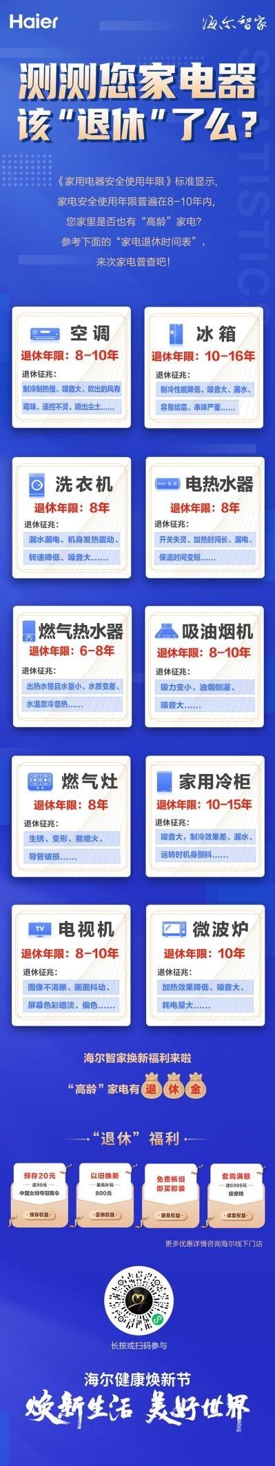 不管是对于生活还是人身安全,家电“超龄服役”的危害都是不可小觑的,因此最好的解决方法就是主动检查、及时换新。下面赶快自查一下您家的电器是否应该“退休”了吧!