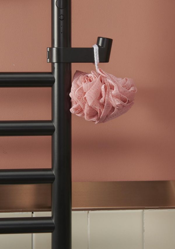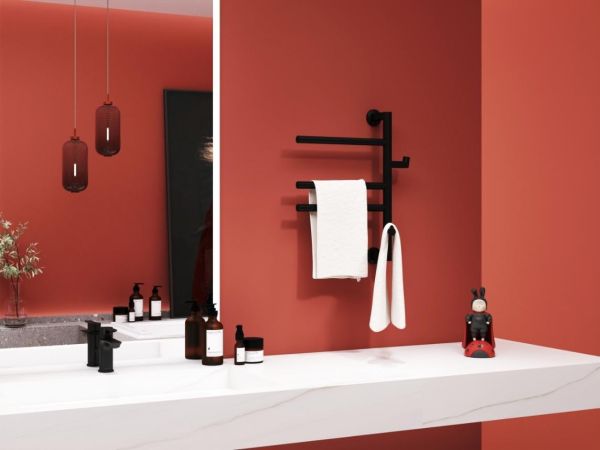 有的家庭会把科勒KOHLER电热毛巾架装在洗脸池旁边,平常毛巾挨在一起挂着,用的时候把旋转挂钩拨一下,取用很方便。日常用的小面巾、发带等配饰也都能随手挂上,相当于多了一个墙上收纳空间。如果想把它装在淋浴区附近也是极好的,沐浴时后用的身体乳、护肤品等可以放在储物盒里,洗完澡顺手就把护肤做了。