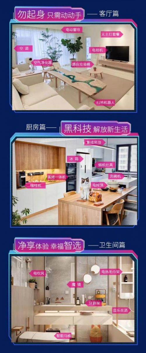 值得一提的是,推进家电与家居生活的智能化也是百安居一直以来的不懈追求。百安居将科技赋能家居生活,在不同家居区域,分别为消费者打造功能强大、实用便捷的居住体验。在客厅区域,百安居利用电动窗帘、空调、空气净化器、感应垃圾桶、电视机和扫地机器人,为居住者打造舒适极净的智能家居系统,营造舒心惬意的休息氛围。回到家,居住者无需起身即可操纵窗帘、家电与清洁机器,方便省心;厨房区域则强调家电的多功能性,百安居合理规划厨房区域家电摆放和动线设计,将蒸、烤功能集于一体,在节省空间的同时也给予居住者更好的烹饪体验;在卫生间区域,百安居则将“净享体验”置于首位,通过干湿分离、分区设置等措施最大程度上保证了卫生间的干燥整洁,同时利用智能马桶、音乐花洒等智能设备,增加使用幸福感。