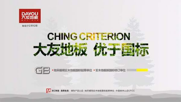 大友是业内少有的集众多荣誉于一身的品牌,作为中国木材流通协会的常务理事单位,率先通过了ISO9001质量管理体系认证、ISO14001环境管理体系认证;被评为“国家高新技术企业”;荣获实木地板新国标修订单位、地采暖用实木地板国家标准制定单位、地采暖用实木地板国标起草单位;浙江制造认证企业,中国绿色产品认证等荣誉。在中国地板行业壮大的历程中,大友一直为中国地板行业发展、为振兴民族工业品牌,贡献着自己的力量。品质先行,不愧为“强国品牌”!