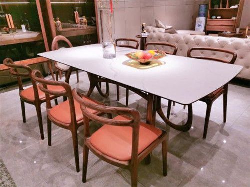 这款餐桌是左右国际的主打产品。主材为不上油漆的胡桃木,环保无污染,透露自然原始之美。桌面选用能与食物直接接触的进口岩板,无任何毒害和污染物质释放,老人、小孩皆可放心使用。桌腿处以蝴蝶为设计元素,时尚简洁,落落大方。
