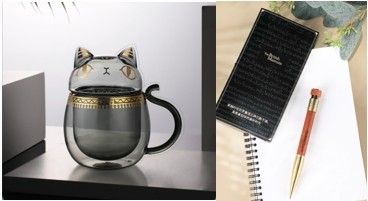 安德森猫异形带盖玻璃杯 罗塞塔石碑旋转笔礼盒