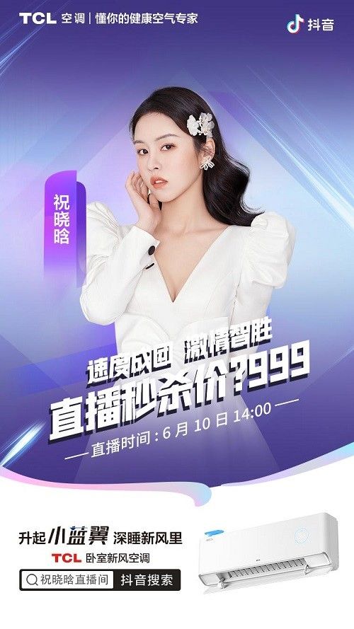 祝晓晗喊你认真睡觉。6月10日,来祝晓晗抖音直播间,看TCL卧室新风空调如何高效助眠。