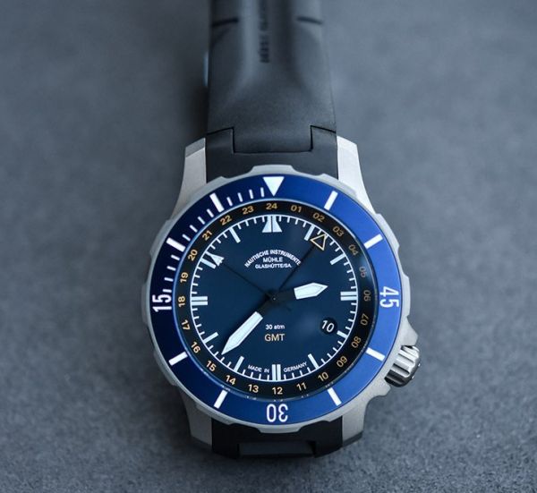 格拉苏蒂·莫勒作为德国海事救援机构官方指定合作品牌,品牌推出的航海系列不仅具有军表硬朗的风格,谨记精准、严谨、精密、稳定的要求,打造的M1-28-62-KB“海军上尉”一经推出,便广受推崇。蔚蓝表盘设计与大海相呼应,300米防水,拥有GMT两地时功能,让你不管身在何处,都能随时掌控时间节奏;钛金属表壳轻便坚固,搭配独家专利啄木鸟颈式微调装置,性能出色,稳定可靠,让你无惧海上风浪,适合喜欢挑战、勇于冒险的男士佩戴。