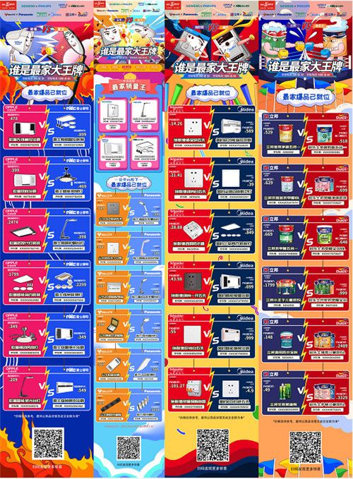 一年一度的618来了,是消费者快乐“剁手”的日子,也是各大商家既期盼又紧张的日子。在这美好的6月里,京东灯饰电工基材携手西门子、飞利浦、欧普、雷士、公牛、松下、美的、施耐德、立邦、多乐士十大最家品牌,发起“谁是最家大王牌”PK赛。各大王牌全力以赴,用最好的产品和最优惠的价格,帮你解决家里装修不知如何挑选开关、灯饰、墙漆的问题。