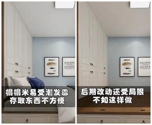 最关键的是,它有好几个缺点,一个是在内部通风不佳,容易受潮发霉,另一个是,上面铺上床褥以后想要拿到底下的东西非常不方便,再加上后期想要改造的话还要拆等一系列缺点,不是很建议大家做……
