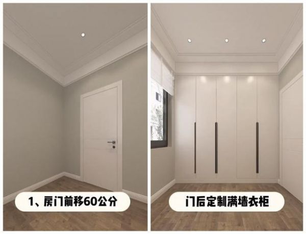 如果不喜欢上面的方案,还有另一个五六平米小卧室的设计方案分享给大家,如果房门紧靠墙根的话,我们可以适当移动,直至宽度可以容纳下一个窄柜,当然,是否能移动房门还要看自家住宅情况。