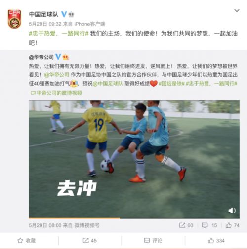 我们发现,作为厨电行业民族品牌的杰出代表,华帝自2018年成为中国队的官方合作伙伴以来,便以不同方式,不遗余力地为国家队加油打气。从呼吁“中国人要对中国足球有信心”到投入人力、物力支援中国的足球事业,从“送画打气”到拍摄《忠于热爱,一路同行》专题片打CALL,被球迷们戏称为“预言帝”的华帝,在整整4年的世界杯周期里,无论输赢,皆坚守着对中国足球、对祖国的热爱,不离不弃。