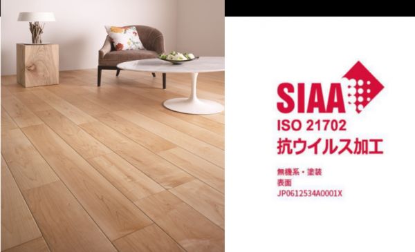 由此可见,地板,是非常重要的病毒传播途径,必须格外重视地板的清洁!2020年8月,日本知名天然木材地板品牌朝日木泰科研究开发的抗病毒天然木材地板,获得了SIAA的抗病毒认证!成为日本第一家获得SIAA抗病毒认证的天然木材地板、复合木地板生产厂家!