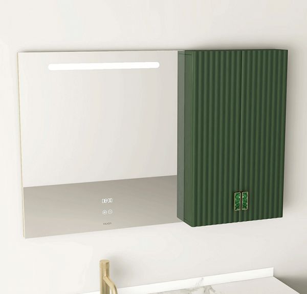 产品配备智能灯光镜箱,可实现高清成像及日常的多功能用途。4000K色温美光灯,美丽梳妆无死角,伴您享受惬意梳妆时刻;电加热除雾,即使淋浴期间也能保证镜面清洗,同时镜面增加温度及时间显示功能,极大方便日常使用。