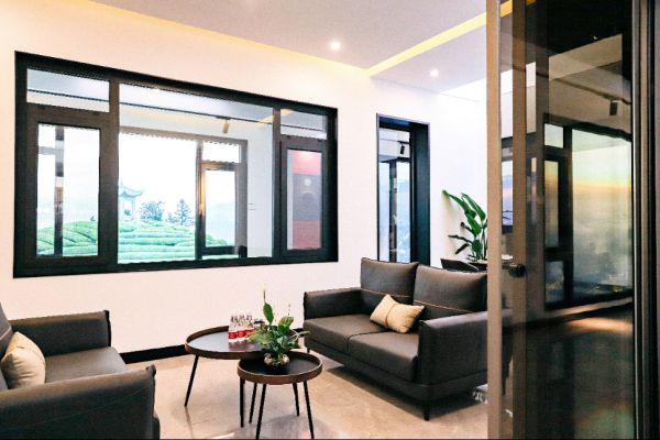 其中,科度“地平线”系列尊崇极简、轻奢风格,整窗可见部分只有边框、玻璃、和全不锈钢执手,边框室内可视面仅有25mm, 第一感觉只有玻璃,通透、明亮,视线没有任何阻挡。加上框扇齐平的特点,整框的室内可视面在同一轴面上,极大的增加了玻璃占比,内平开大于90度,使室内得到最大通风,内倒开达18cm的距离,并且在最大处做了自动定位处理,有效避免了安全隐患。整窗铝合金采用亚洲第一高楼上海中心外墙用材,软硬共挤胶条使隔热效果提升5倍(实验室数据)。产品结构上加入特殊构造,材料壁厚增加、边框增加腔体式凸筋,窗扇外侧做L型设计,所有连接位置均注入专用的双组份注胶角。外框颜色毕尔巴鄂黑喷涂金属粉具有视觉渐隐效果,极大满足了现代都市崇尚高品质生活的家庭对简约时尚的追求。