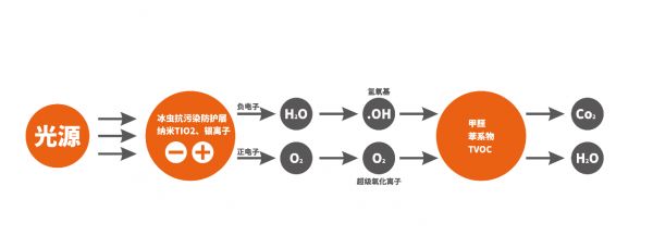 作为光的使者,朗德万斯率先获得光触媒应用专利技术,首创性地把可见光催化光触媒材料和有机物结合在一起,将材料涂附于灯具或者光源发光表面,突破了传统光触媒材料需紫外光催化的限制,同时可有效降解空气中有毒有害和有效杀灭多种细菌,二氧化钛所产生的光触媒反应与自然界中的光合作用一样均仅产生水与二氧化钛,避免了二次污染的产生,达到照明和除醛的功能。