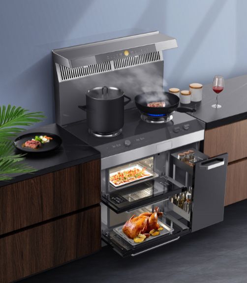 后疫情时代,人们越来越注重营养健康,从外食、外卖到在家自己烹饪美食,这是现代生活趋势的改变。当人们对烹饪有更高、更多功能的需求,就会开始购置许多小厨电,以补足原有大厨电的缺陷,这就导致厨房空间变得拥挤凌乱且使用不方便。美的新一代独立蒸烤集成灶Y36,集成烟机、灶具、蒸箱、烤箱、储物功能,尤其独立蒸烤箱设计,专业烹饪更美味,还可以分离并同时运作,满足同时烹饪的需求,让可口美食无需多等待。