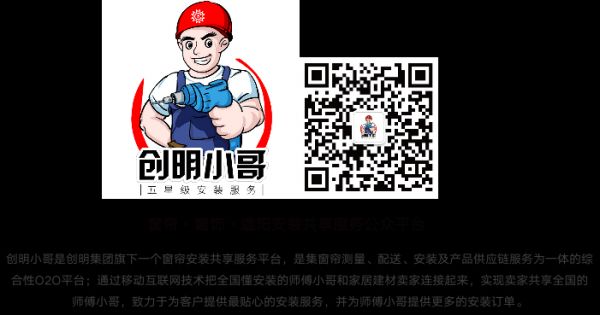 而创明小哥则是为了打通门店、软装设计师和安装电动窗帘的师傅而生的。江河总裁告诉新浪家居:“电动窗帘需要专业的接受过培训的安装师傅进行安装和调试,而普通的窗帘销售门店和软装设计师是养不起安装师傅的。创明看到这个痛点,就决定开发一个安装窗帘的平台,汇集全国上万个安装师傅,门店和设计师可以在平台上下单,师傅在平台上接单,共享安装师傅资源。除此之外,还可以实现跨区域的安装任务,以解决窗帘销售门店和软装设计工作室销售和安装窗帘的痛点。”目前,作为创明集团旗下安装共享服务平台,创明小哥拥有300+城市服务站,20000+安装师傅,为窗帘店、软装馆、装修公司等提供全品类窗帘、窗饰、遮阳安装售后服务,更好地解决窗帘安装因跨区受限,管理成本高等安装痛点,致力于成为窗帘软装行业内五星级服务共享标杆。
