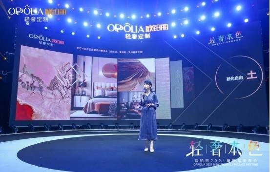 欧铂丽产品总监明贵华女士从灵感取材到创意阐述,向大众展示新品研发理念及设计创意。欧铂丽2021全新原创轻奢新品,以“有颜、有品、有料、有趣”作为核心设计理念,融入于简、雅、奢3大主题中。从潮流色彩、高品质、个性定制、一体化服务等作为创意出发点,深入洞察Me世代不同人生阶段需求,为满足当代多元化生活方式与主张,以轻奢为桥梁,以实现潮流美家和个性生活的价值互通为目标,最终得以打造出重塑、颠覆行业轻奢概念的优质新品。