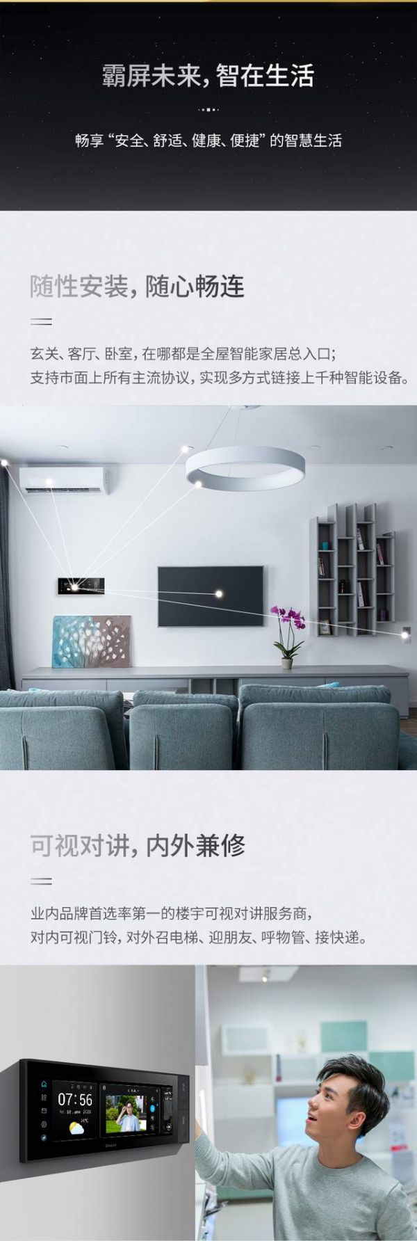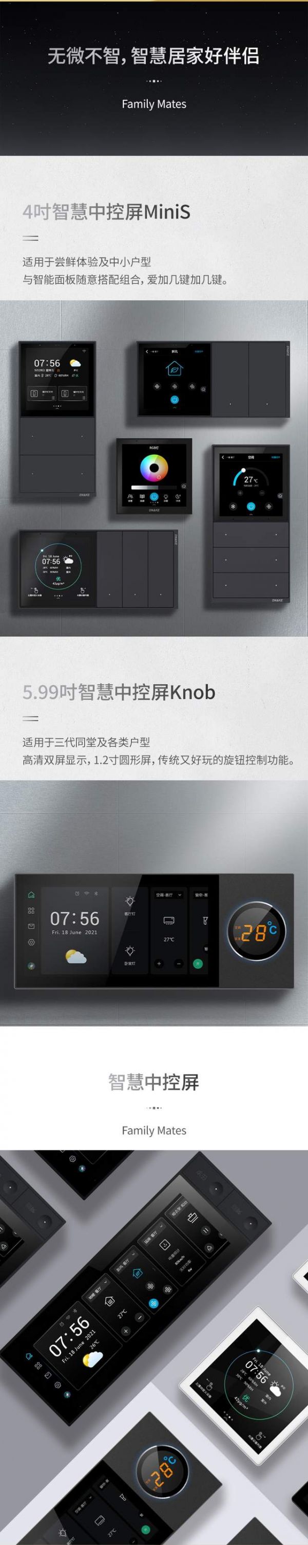 稳定胜过一切,创新永不止步。今日,狄耐克超级家庭智慧中控屏首发亮相,产品涵盖4吋、5.99吋和7.84吋三款外观,融合了可视对讲、智能网关、智能场景、灯光氛围控制、智能开关面板、背景音乐控制、语音控制、温湿度显示、可视门铃等功能,以进化式的优质交互体验,实现智慧社区、智慧安防、智慧家庭的无微不智之体验。