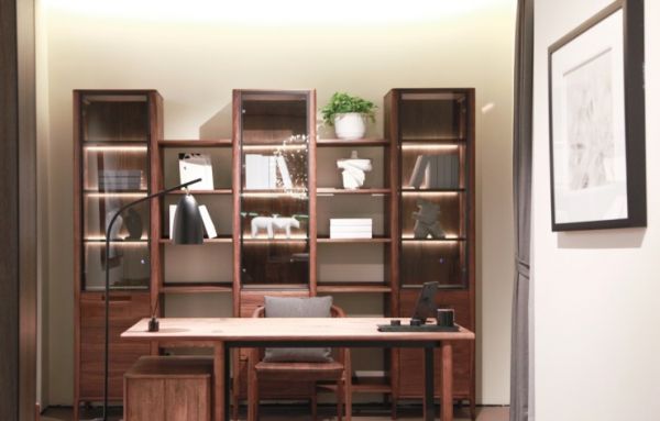 主打现代简约风,黑森林5.0在原有黑森林产品的基础上进行升级,一方面,保留了美国黑胡桃木的高贵品质;另一方面,在设计上也更加注重视觉美感,一改传统实木家具的厚拙体型,增加了圆润化的细节处理,呈现出更加轻盈和现代的时尚感。针对当代年轻人的审美喜好,百强家具的设计师还精心在其中嵌入铁艺、岩板、皮革、玻璃、铝合金等材质,通过不同材质的搭配与碰撞,让实木家具迸发出新的活力与生机。