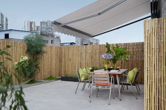 天台改造是整个老房焕新的重中之重,其防水性决定了房屋防潮系统的寿命,因此设计师花费了较大的心力,最终它也如愿以偿地成为了设计师余颢凌最满意的改造点。“焕新”后的天台一改先前的杂乱无章,不仅防水层得到修复,设计师还巧用竹果、蔬菜等植物元素,让人与自然融合,使天台焕新成了一个可以小坐畅饮的休闲佳所。