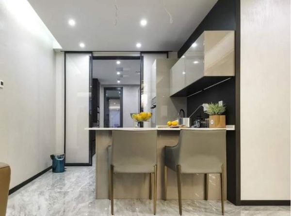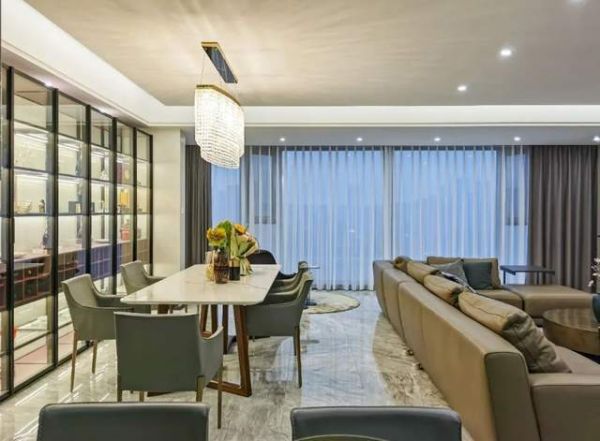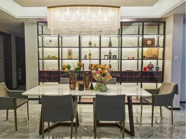 餐厅:较高灰度值的颜色,天然便为治愈而生。在餐厅这种自带休闲放松属性的区域,选择不那么耀眼的颜色进行搭配,会让人格外轻松。酒柜的存在营造了更通透的空间感,集储物、藏酒、展示于一体,搭配上具有格调的摆件,绝对是家中靓丽的风景线。