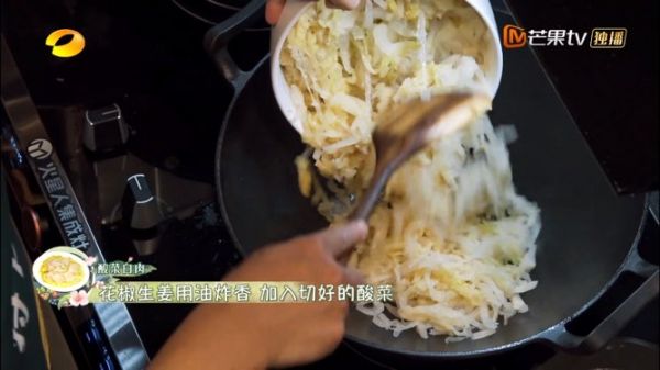 在节目中,我们看到火星人集成灶拥有的4.2KW大火力不过片刻就把油锅热好,花椒生姜炸香后,切好的酸菜也随之而下。火候的精准把握是一道菜能否成功的重要因素,而火星人内外双环设计让火焰燃烧更稳定均匀,多段火焰根据需求精准调控,让专属温度唤醒食物独特口味。