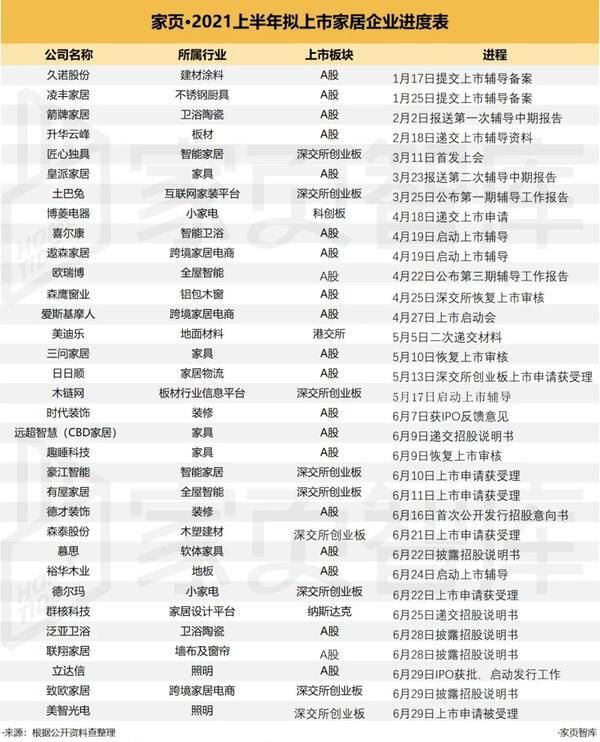 2021上半年,家居企业迎来上市潮,几乎每周都会有企业更新IPO进度,一些隐形冠军也渐渐浮出水面。