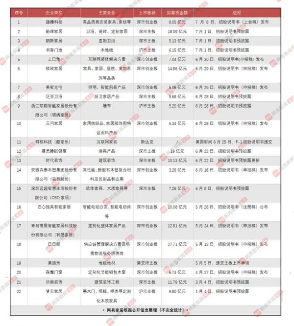2021上半年家居企业IPO盘点:6家过会,至少22家排队中