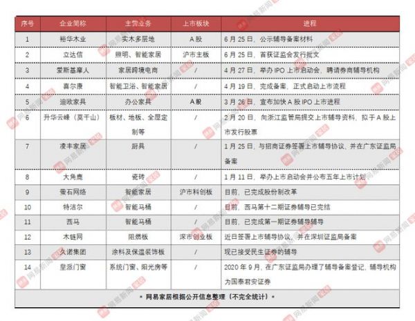 据不完全统计,目前已有14家家居企业正式启动或推进上市流程,未来或将逐渐形成家居企业上市小高潮。