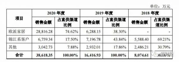 2019-2020年,慕思股份对欧派家居的销售实现快速增长,收入金额分别为6288.15万和2.88亿,占营业收入的比例分别为1.63%、6.47%,欧派家居已成为公司2020年度第一大客户。