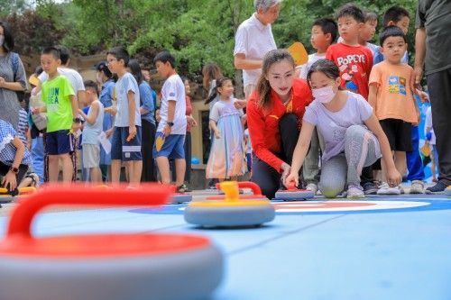 小朋友在世界冠军赵楠楠指导下掷出冰壶
