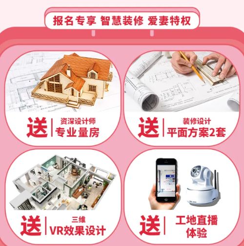 本次展会,百姓装潢特别推出智慧装修,爱妻特权:送资深设计师专业量房,送装修设计平面方案2套,送三维VR效果设计,送工地直播体验,让消费者在预算内,享受到超值的家装服务体验。