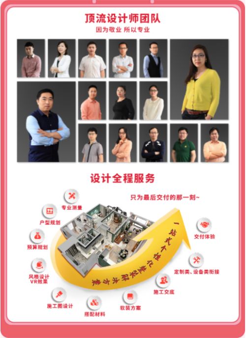 公司有专业的设计团队、施工团队、售后团队,为业主提供全流程、高标准、好品质的装修服务,为沪上百姓提供最专业的装修饰前、饰中、饰后服务,让消费者放心省心。