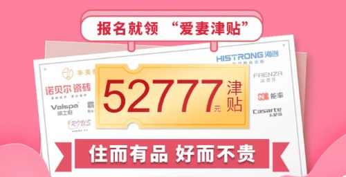 重要提示!本次展会,报名就领52777“爱妻津贴”,现场签到更有精美设计专辑,精美时尚玻璃杯等超值奖品,数量有限,先到先得!更有浪漫样板房限量征集,装修百万爱妻补贴,赶快来预约吧,现场更多甜蜜惊喜,等你来揭晓。