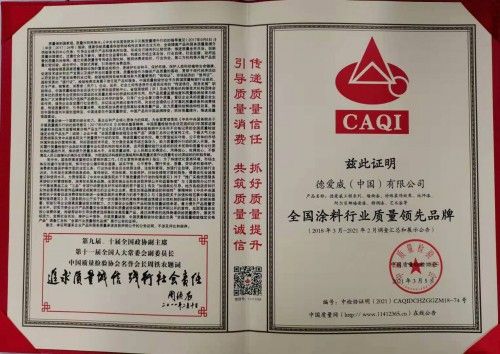 质量是企业的生命,诚信是立业的根本。德爱威获得的殊荣,既是对德爱威“来自德国的功能涂料”品质的肯定,同时也是对德爱威承坚守企业信誉的褒扬。德爱威作为德国涂料企业DAW SE集团成员,始终秉承德国以质取胜的传统,致力于中国涂料行业的创新发展。