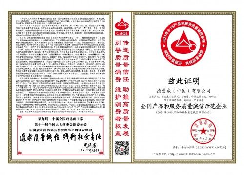 共筑质量信誉,德爱威获喜获产品质量和企业信誉五项荣誉