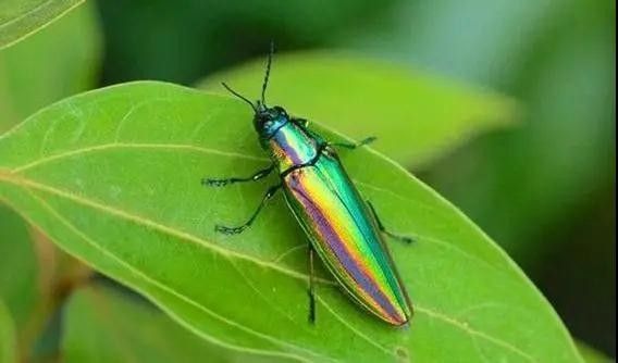 它身上闪耀的蓝、绿、黄、白等缤纷色彩,