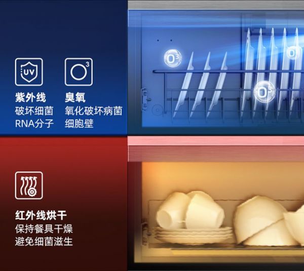 烹饪后的餐具安置也很重要,而美的蒸汽洗集成灶D14S也巧妙的为用户解决了餐具的消毒和存放的难题,灶台下方就是消毒柜和储物柜,别看占地很小,却拥有138L的消储容量家庭聚餐或是周末聚会,餐具多也能轻松收纳,同时它的消毒级别达到了国标二星,拥有三重净化深入杀菌:通过臭氧+紫外线杀菌,搭配62℃红外线烘干,有效杀灭大肠杆菌、骨髓灰质炎病毒等多种顽固细菌,同时红外线烘干功能也保证了餐具干燥,可避免细菌滋生,守护全家人的健康。