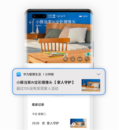 在摄像头和智能手机的连接应用上,除了支持通过华为智慧生活App远程操控,还支持手机悬浮窗展示,这样即使一边追剧打游戏也能兼顾到家中动态。