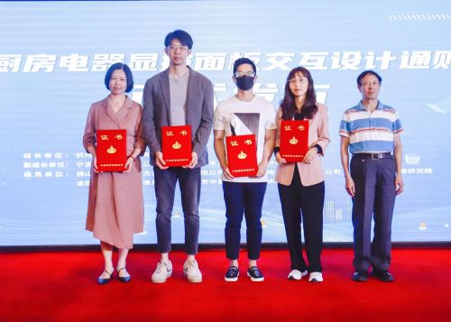 会上,由老板电器主起草的团体标准《厨房电器显控面板交互设计通则》也正式迎来发布,中国质量检验协会净水设备专业委员会理事长邓瑞德专程为参与标准制定的厨电企业颁发了证书。