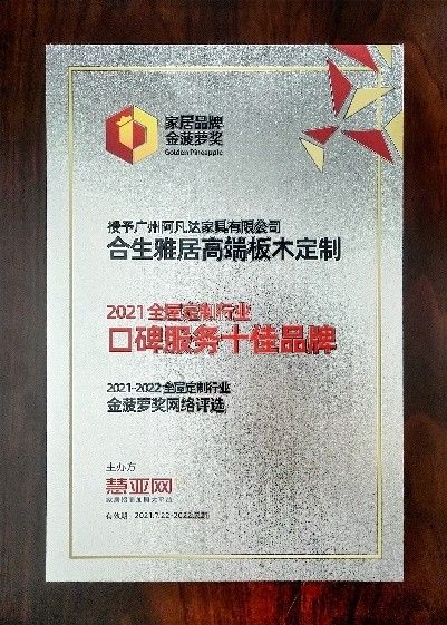 15年来,合生雅居在推动全屋定制产业升级过程中不断摸索与创新,在前进的道路上也获得了诸多殊荣,此次活动,合生雅居荣获全屋定制口碑服务十佳品牌大奖,将不断激励着合生雅居及家人们更有信心、更有力量、更有激情地在全屋定制领域做出更优异的成绩,未来,合生雅居将初心以恒,始终用优质的品质与服务回馈广大消费者,为大众美好品质生活砥砺前行!