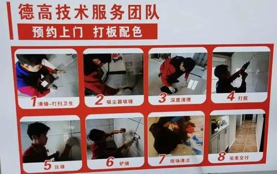 逛建材市场时,看到德高艺术美缝专卖店,店里面有好多产品,感觉装修就比较专业,便进去了解咨询美缝施工的事。