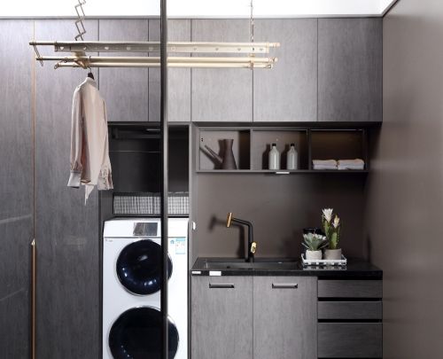 简·科罗的阳台,采用雀羽枫木纹与半岛布纹结合,淡雅深邃,清新自然;洗衣、储物和晾晒的合理分区,让家整洁有序,达到一个舒服的居住状态。