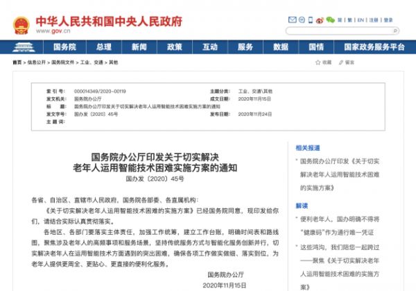 去年11月,国务院办公厅印发了《关于切实解决老年人运用智能技术困难实施方案》,就进一步推动解决老年人在运用智能技术方面遇到的困难,坚持传统服务方式与智能化服务创新并行,为老年人提供更周全、更贴心、更直接的便利化服务作出部署。