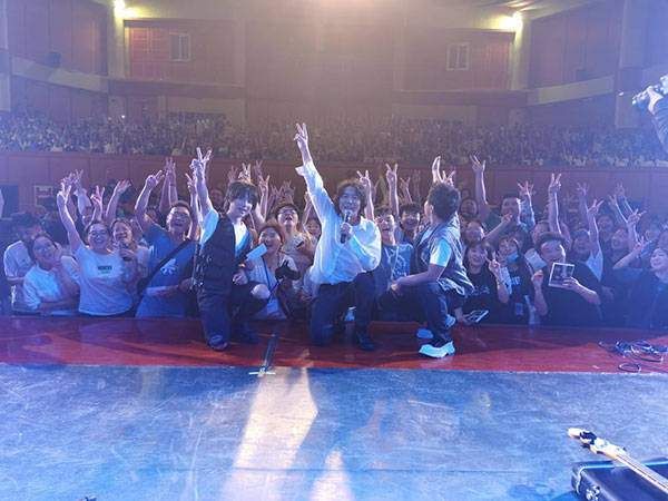 大礼堂内座无虚席,学生们打开手机手电筒、挥舞双手、跟唱歌曲,每一位学生都仿佛化身水木年华组合的小迷妹和小迷弟,真正展现出了经典音乐永远不存在年龄的结界,置身于舞台的歌手与台下的学生们,此时此刻仿佛处于同一时空,一起向美好的校园时光告别,向未来发出挑战。