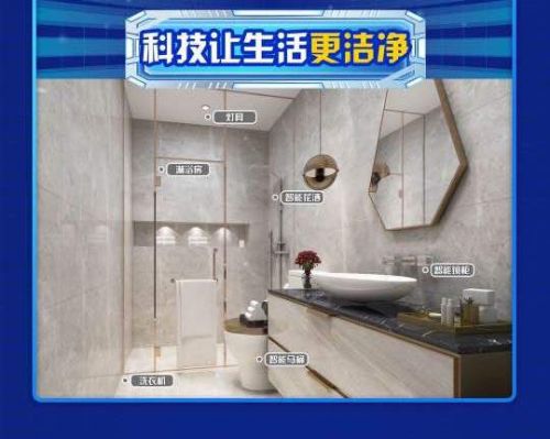 在卫生间区域,百安居则主要通过强调家电产品的清洁度与智能安全性能,让消费者生活更洁净。百安居为消费者注入满满人文关怀,通过配备智能花洒、智能马桶、智能镜柜、智能照明系统等“科技力满满”的设备,全方位全流程给予消费者顺畅、省心、安全的卫浴生活。同时通过干湿分离、分区放置等措施,最大程度实现卫浴空间的干燥整洁,让生活更洁净。