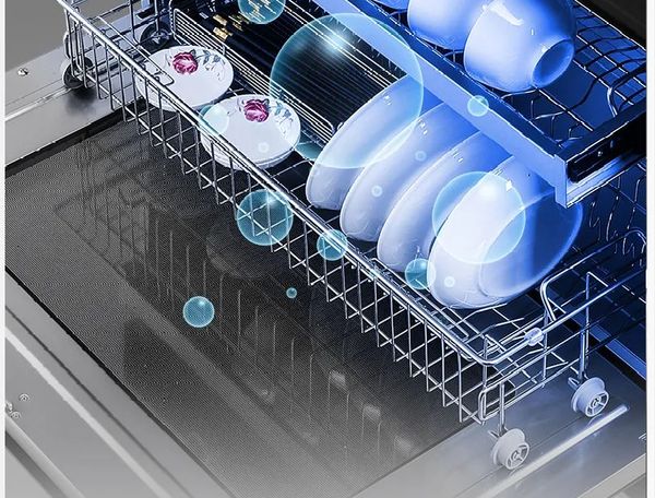 佳歌H1S集成灶还集成100L超大容量一门式消毒柜,改变双抽式集成灶将两个抽屉隔开造成的空间浪费,无红外线灯管空间利用更充分,8口之家的餐具轻松容纳。台面不凌乱,厨房更简约